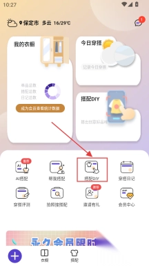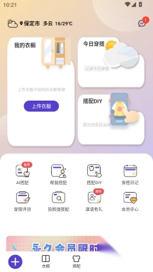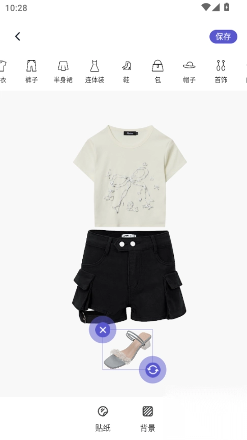 DIY创作天地:挣脱模板束缚,用户能够随心叠加衣物图片进行穿搭创作,还支持保存与分享。