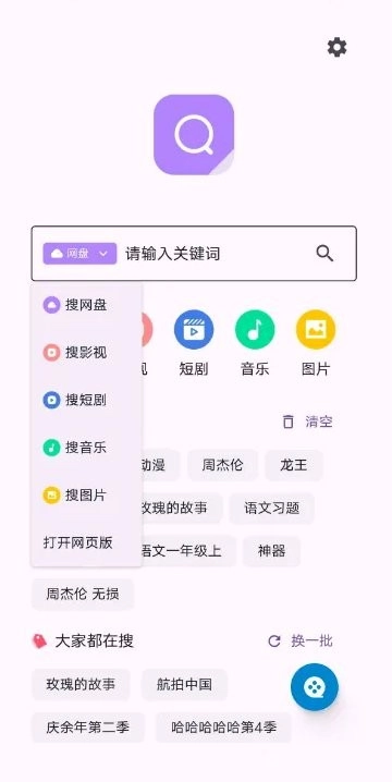 支持应用投屏播放,操作简便,能迅速搜索网盘、影视、短剧、音乐、图片等丰富内容。
