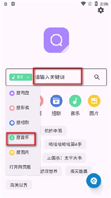 打开软件,选择搜音乐,在输入关键字进行搜索