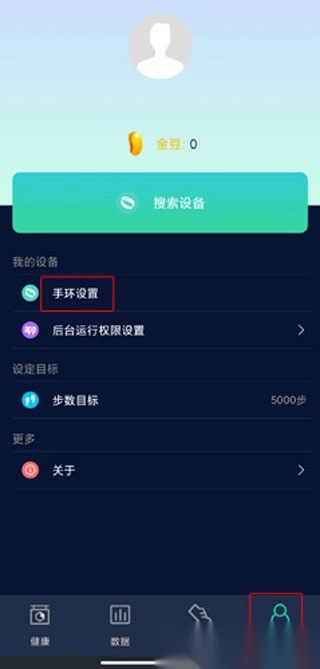 1. 进入【我的】页面,接着点击【手环设置】按钮。