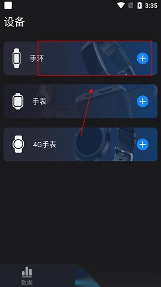 3. 挑选设备类型,点击手环选项。