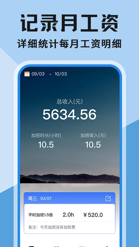 2.在这里记录简单便捷,每一天的工资、时长一目了然