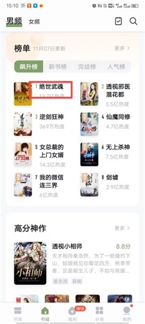 1、安装完成后,进入主页面,你会看到众多内容选项,有不少新书。在左上角能够选择男性或女性阅读类别。