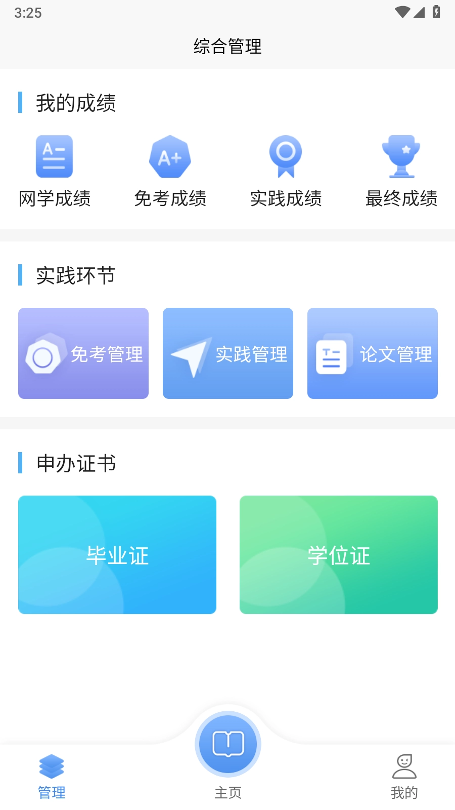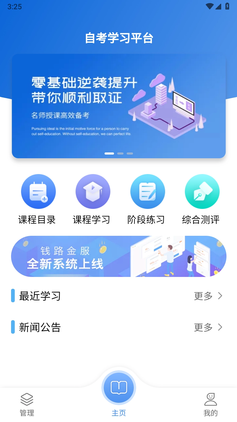 1. 开启自学考试网络学习平台App,进入首页后,便能瞧见课程目录、综合测评。