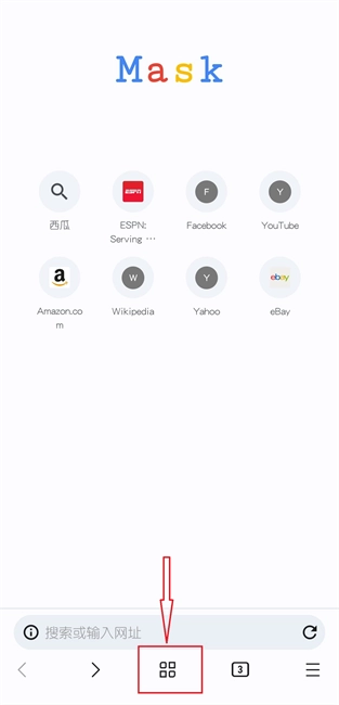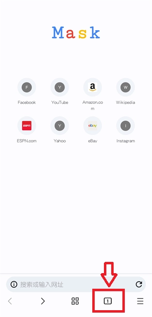 1.进入浏览器后点击下面的多签页面标识