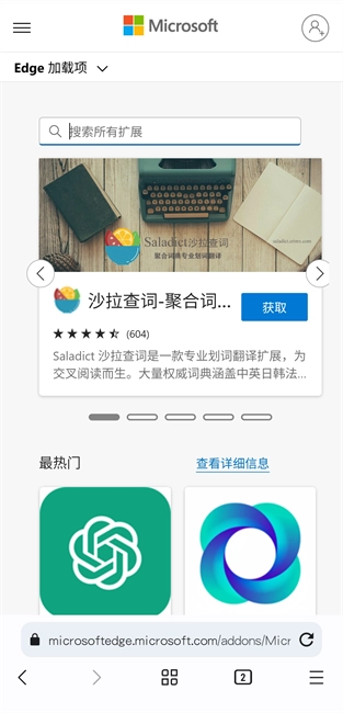4. 在此以Edge浏览器为例,点击进入后,能看到各式各样不同的拓展模组,挑选所需的模组,点击导入就行。