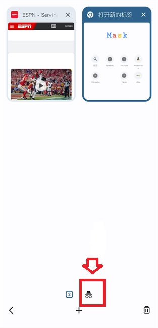 2. 于多开页面中,点亮帽子与眼镜的图标,就能开启无痕浏览模式。再次点击该图标,可切换回正常模式。