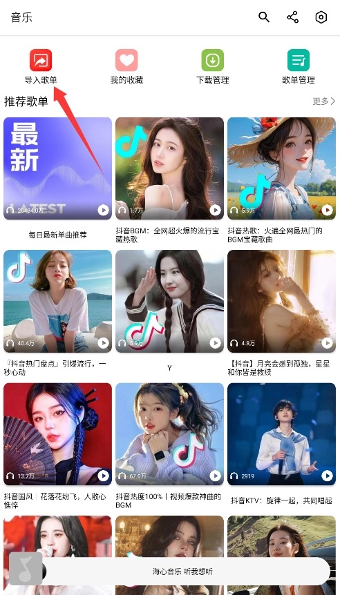 1、进入应用主页面后,点击左上角"导入歌单"选项进入外部歌单导入界面。