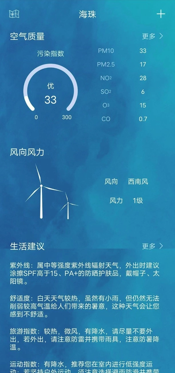 为您在运动、旅游时,就是否需要携带雨伞、风寒感冒的易发状况以及添减衣物等方面提供参考。