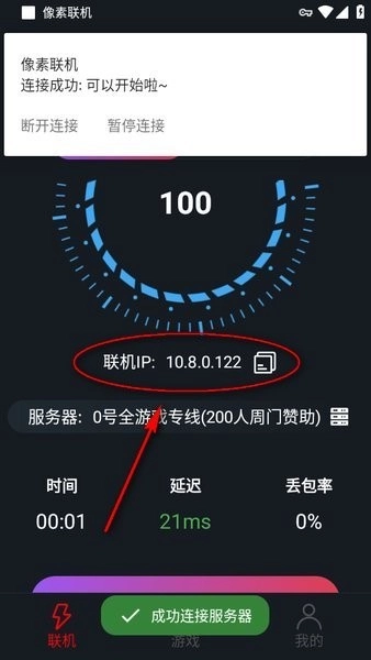 5、当出现联机成功的提示后,即可复制联机IP,并发送给想要一起联机游玩的好友。