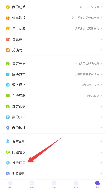 2、进入个人中心页面后下滑至底部,找到并点击"系统设置"选项进入账户管理。