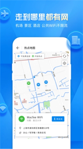 近千万与地区政府及运营商合作的公共WiFi热点,覆盖全国200多个城市,一键安全连接,操作简单。