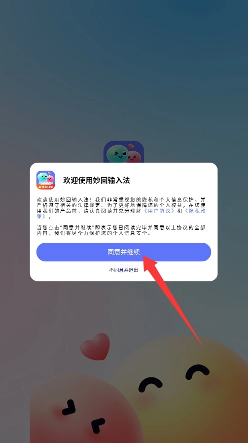 1、安装完成后首次启动09输入法,仔细阅读用户协议与隐私条款,确认后点击"同意并继续"进入主界面。