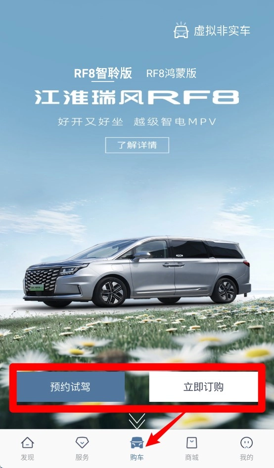 3、轻点“购车”板块,即可直接预约试驾或者下单订购,选车购车轻松实现一站式完成。