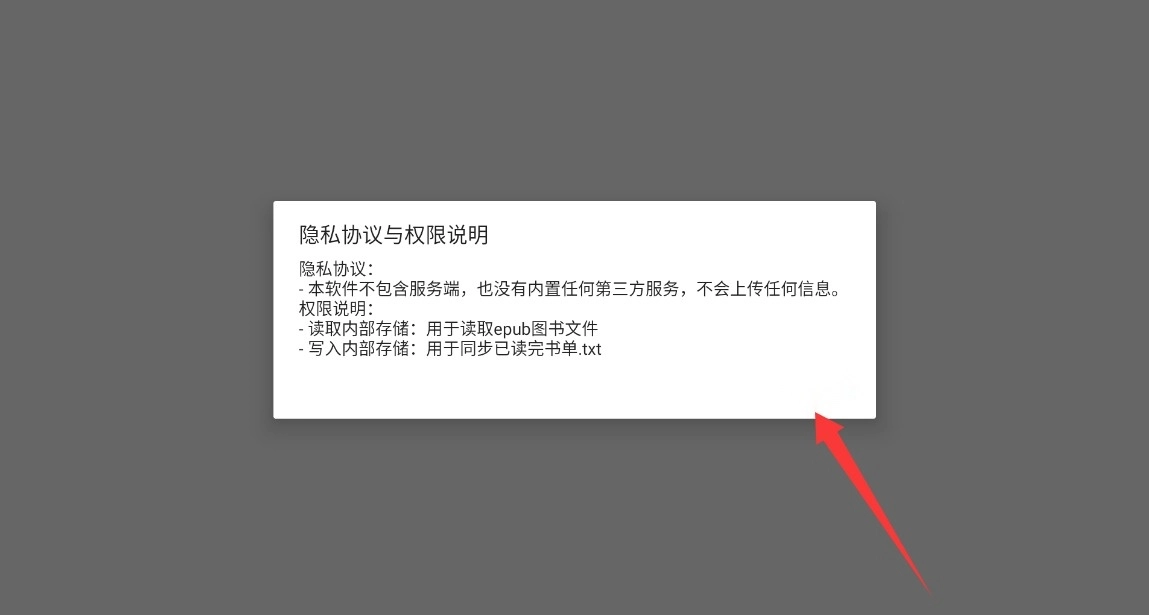 1、打开Epubium软件,先看看隐私协议和权限说明,点"同意并继续"才能用。