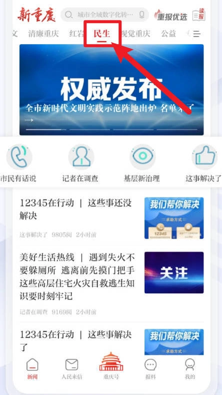 2、切换至“民生”栏目,关注社会热点服务民生。