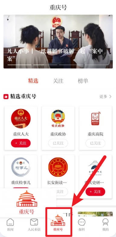 4、点击“重庆号”,查看特色栏目与账号。