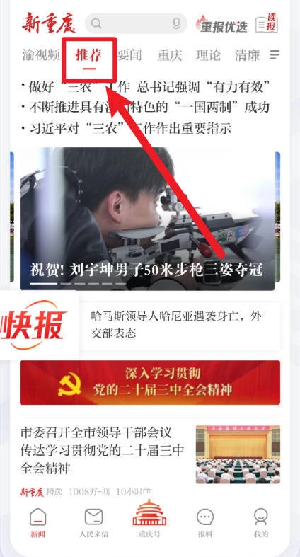 3、选择“推荐”标签,阅读推荐新闻与权威快报。