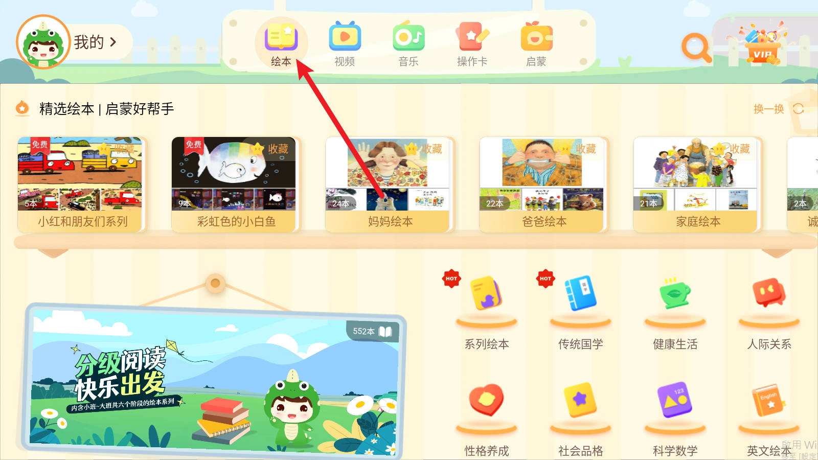 1、点击绘本分类,可进入丰富故事绘本阅读区。