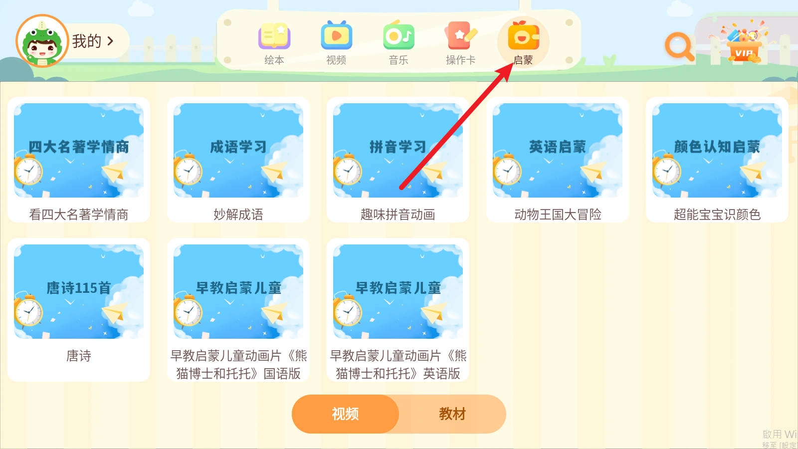 5、点击启蒙栏目,进入拼音认知等启蒙教学内容。