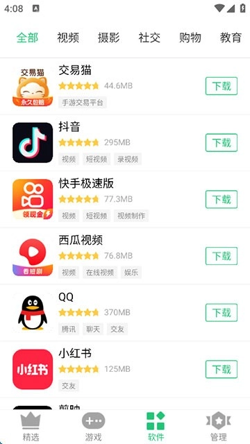 3、在首页,直接点击上方的“分类”,即可通过更多详细选项,精准找到所需应用。