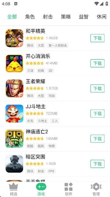 2、点击游戏,根据游戏类型筛选,就可以找到同类别的软件。