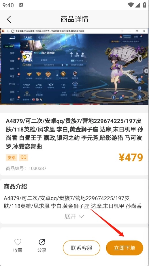 4、点击你所需要的游戏账号,然后点击“立即下单”就行。