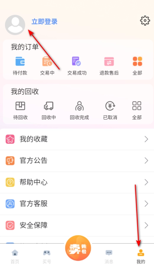 1. 在本站进入koo账号软件,接着点击“我的”选项,随后点击“立即登录”按钮。