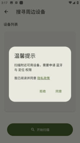 2.点击【搜寻周边设备】,同意提示,进入设备列表;