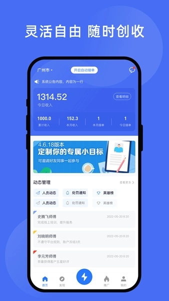 最新订单和交易完成及时提醒,以便快速接单和按时结款;