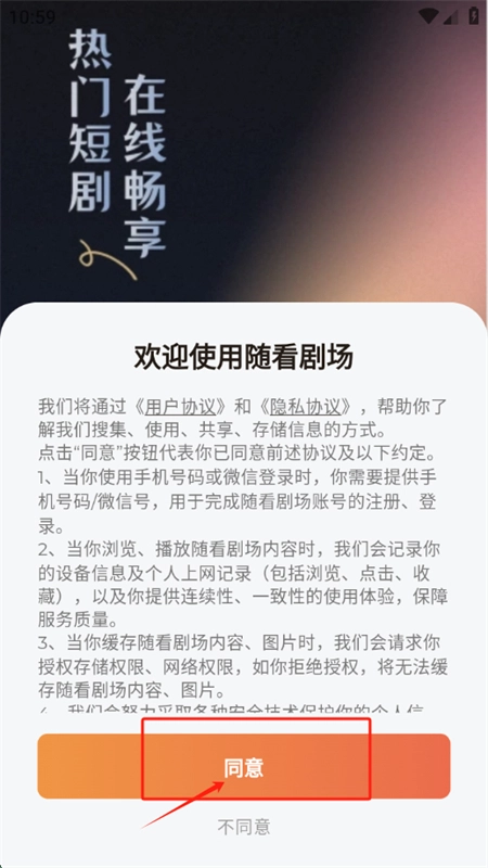 2、点击同意协议政策后直接进入首页