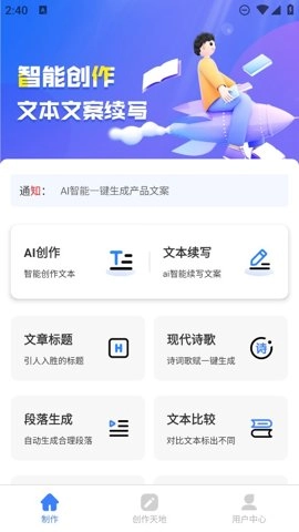 1、这是一款以AI续写功能为主要特色的软件,适用于各类文案创作,是为自媒体工作者精心准备的优质工具。