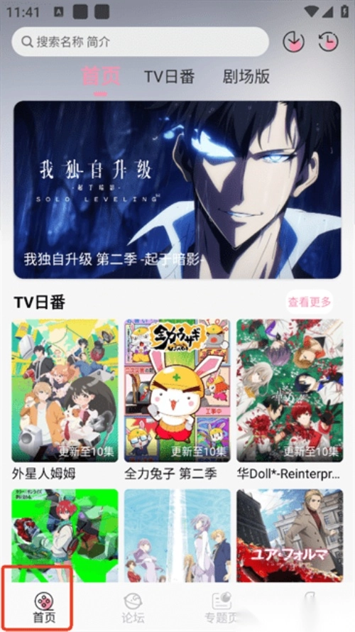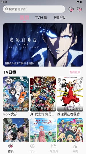 1. 在软件的首页界面,我们能看到种类繁多的动漫作品,像 TV 日番、剧场版等。