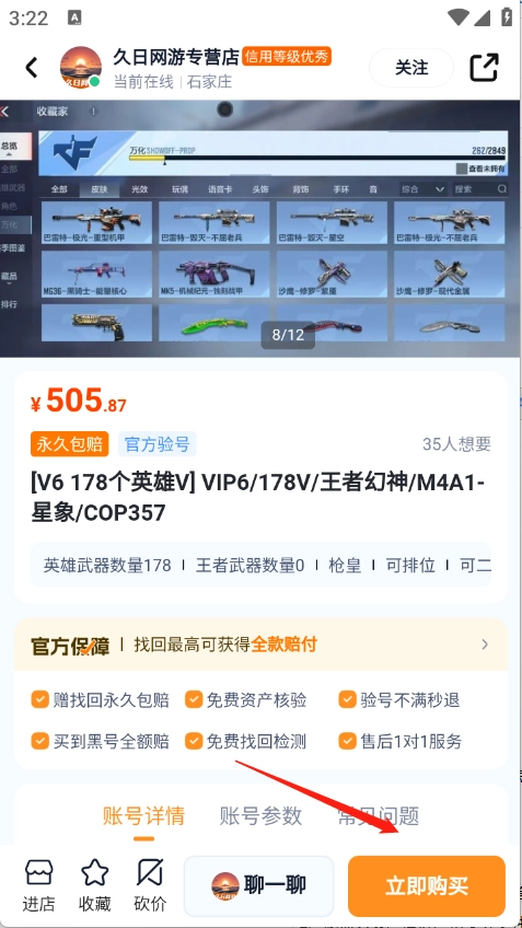 需注意,对于未购买包赔服务或包赔服务已过期的账号,若出现账号被找回的情况,平台会帮助买家进行追款。然而,要是最终追款未能成功,买家将无法获得相应理赔。在此,建议您优先挑选带有“永久包赔”标识的账号。
