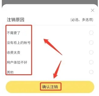 4、当弹出窗口出现后,在其中挑选注销原因,随后点击【确认注销】按钮。