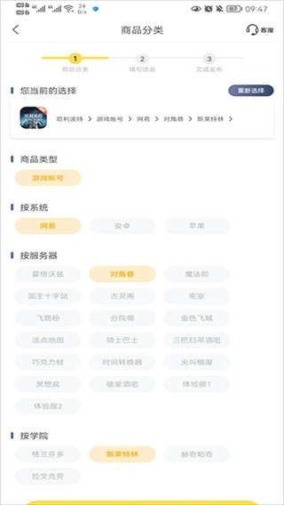 1. 开启螃蟹账号代售软件,于卖号页面里挑选你打算出售的类型。