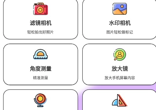 1、覆盖日常实用功能,像角度测量辅助工作生活,放大镜查看细节,随时可用。