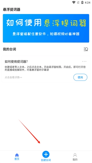 2、进入首页点击创建台词。