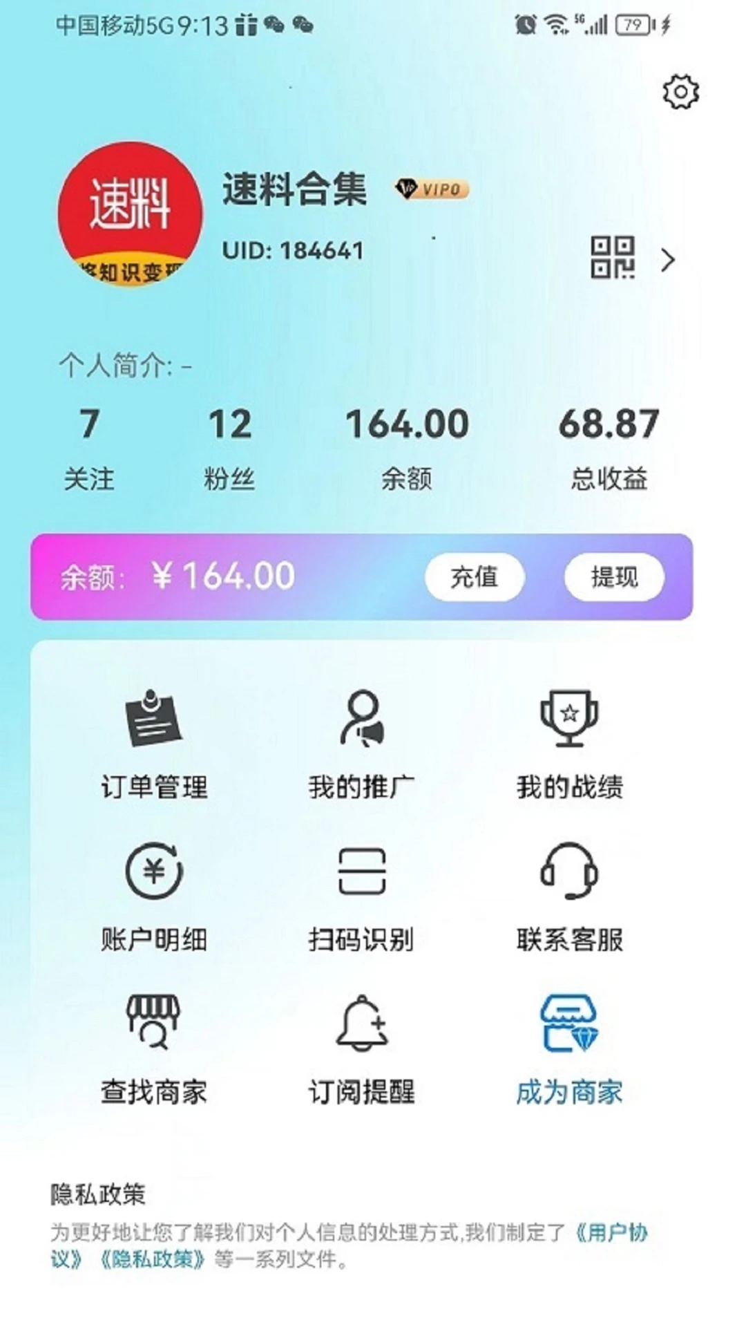 知识变现途径:速料合集为用户搭建起知识变现的通道。只要用户所发布的内容能引发他人兴趣,且对方愿意付费获取,用户就能借助这个平台达成知识变现。