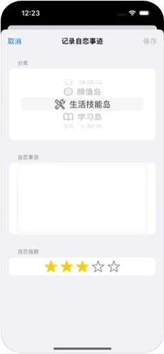 3、生活中无时不刻都有自恋事件,你可以随时记录并打分