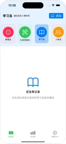 4、可以在学习岛中添加各种自恋事项,反馈心理变化