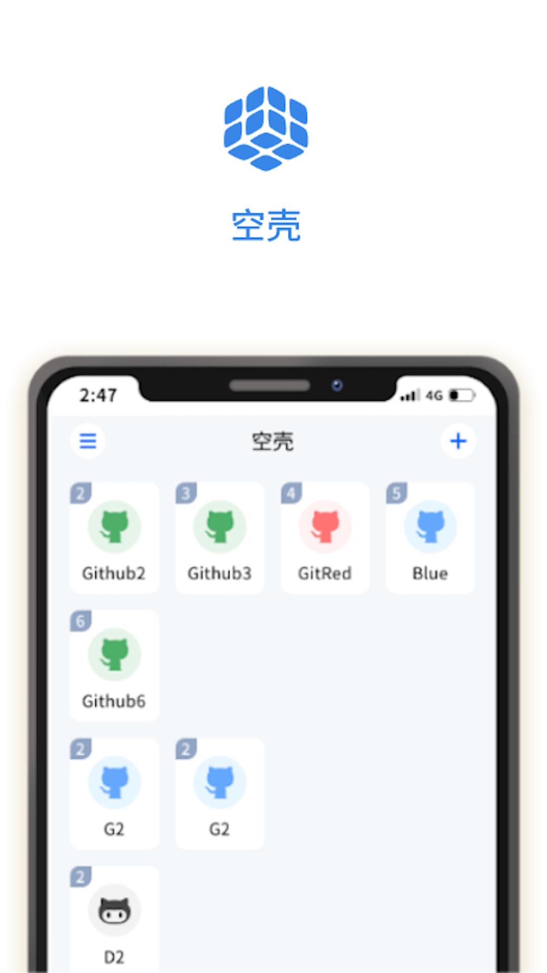 1. 空壳属于应用分身类应用,能够支持主流应用进行分身操作。它围绕分身应用,为你塑造出另一个完整的网络冲浪身份,让你对自己的身份拥有绝对的掌控权。