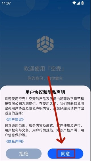 1. 第一步,打开空壳,于登录页面需同意软件相关协议。