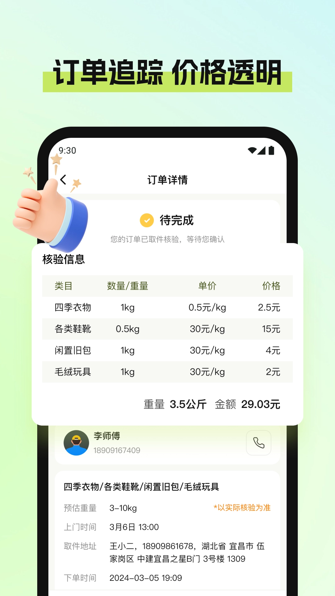 在应用程序内可实现订单的实时追踪,随时知晓订单状态,以保障回收工作正常进行。