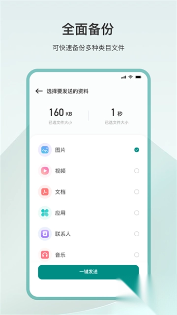 特点:一键操作,轻松实现多种数据的传输。