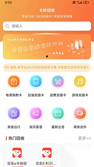 卡秒回收支持回收种类