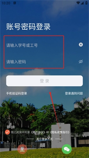 3、来到登录页面,填入学号或者工号以及密码,点击“登录”按钮就可以了。