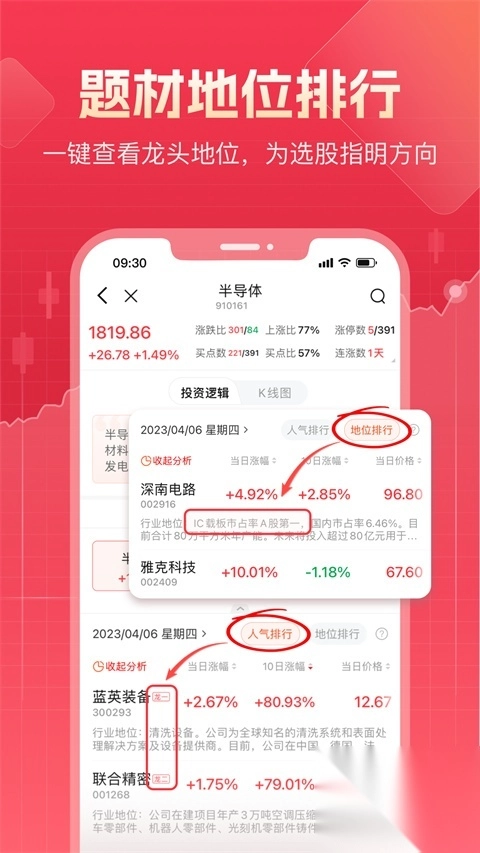 4、【个股题材亮点】个股所属题材排名,行业地位一眼穿透。