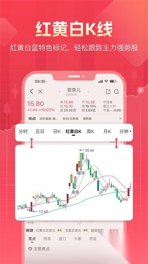 1、【红黄白K线】红黄白蓝特色标记,一眼识别资金面。