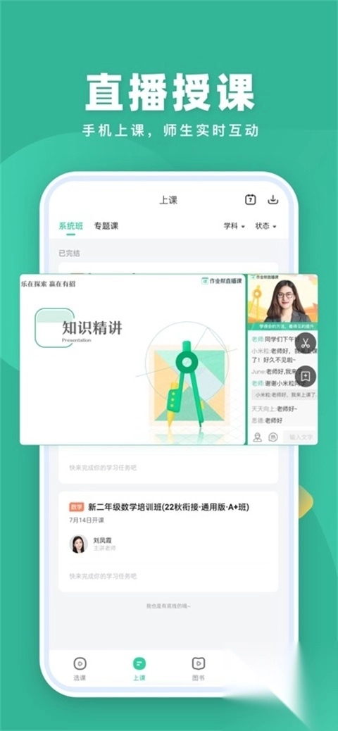 1. 互动形式:在直播课堂中,通过连麦实现互动,老师密切留意学生的动态。